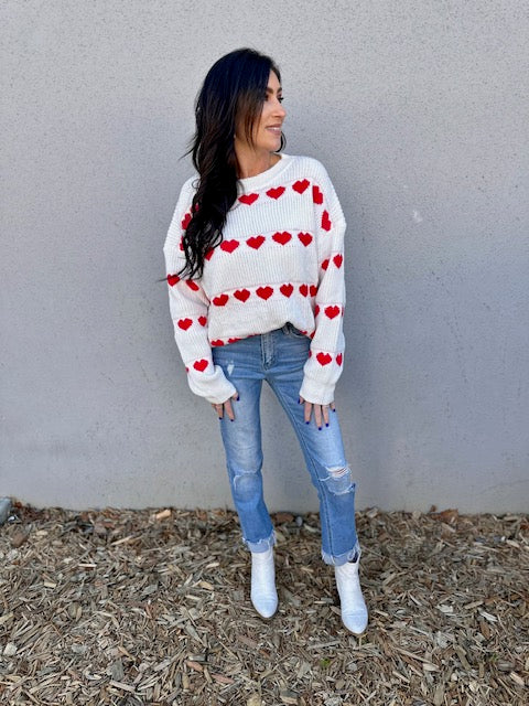This sweater is the perfect way to stay warm while showing off your love for fun, stylish knitwear. Whether you're heading out for Valentine's Day or just embracing cozy-chic vibes, this piece will make your outfit stand out!