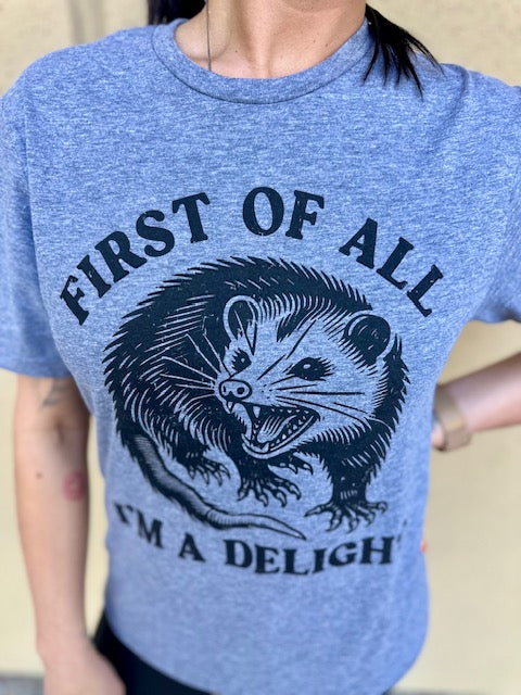 Make a bold statement with this hilariously sassy possum tee! Perfect for anyone who’s a ‘delight’ with a wild side, this comfy graphic shirt is a must-have for nature lovers and fans of quirky humor.