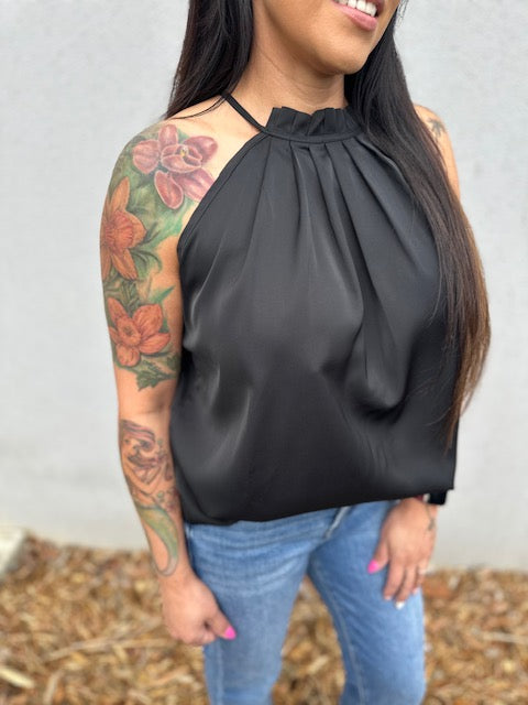 Add effortless elegance to your wardrobe with the Nova Halter Ruched Top in a gorgeous soft pink hue or black. Designed with a flowy silhouette and delicate ruched detailing at the neckline, this sleeveless top offers a flattering, airy fit perfect for any occasion. The lightweight fabric drapes beautifully, making it an ideal choice for warm days or layering under a chic jacket.