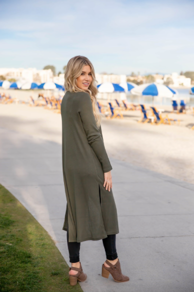 🌿 Split Hem Duster Cardigan – Effortless Layers in Olive & Gray