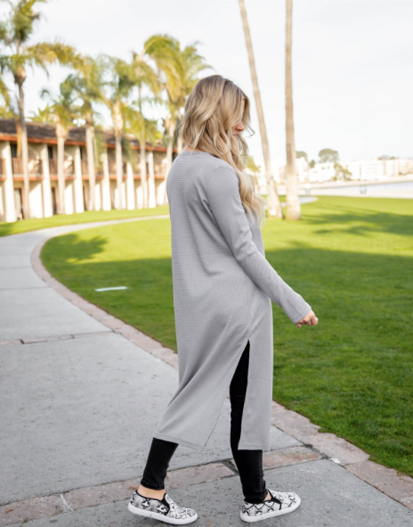 Stay cozy and stylish all season long with our Split Hem Duster Cardigan, the perfect lightweight layer for effortless everyday wear. Featuring a sleek, open-front design and side-slit hem for easy movement, this cardigan combines comfort, versatility, and sophistication.